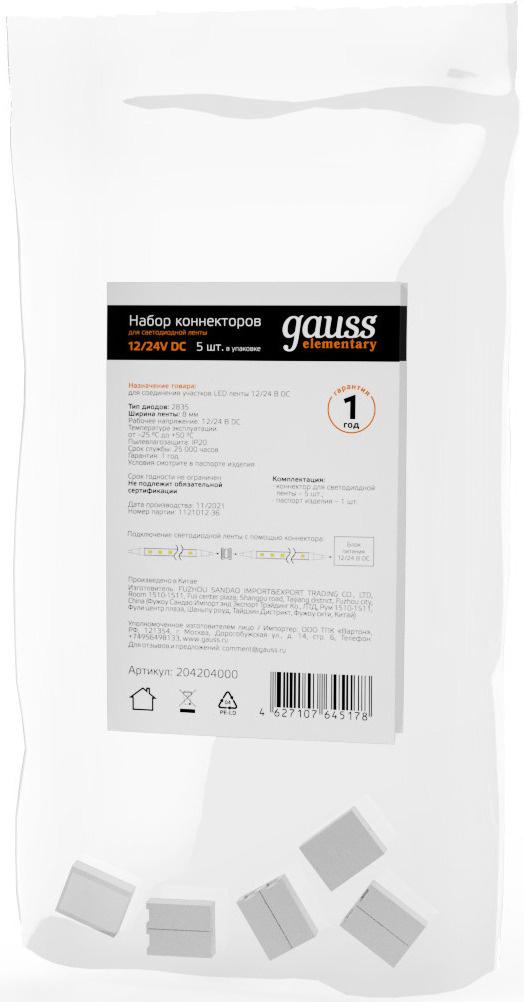 - Ссылка на сайт поставщика/вендора: https://b2b.gauss.ru/catalog/svetodiodnaya-lenta-i-bloki-pitaniya/bloki-kontrollery-konnektory/konnektory/elementary/nabor-konnektorov-gauss-dlya-svetodiodnoy-lenty-8mm-2835-ip20-5-sht-v-upak-1-3000/