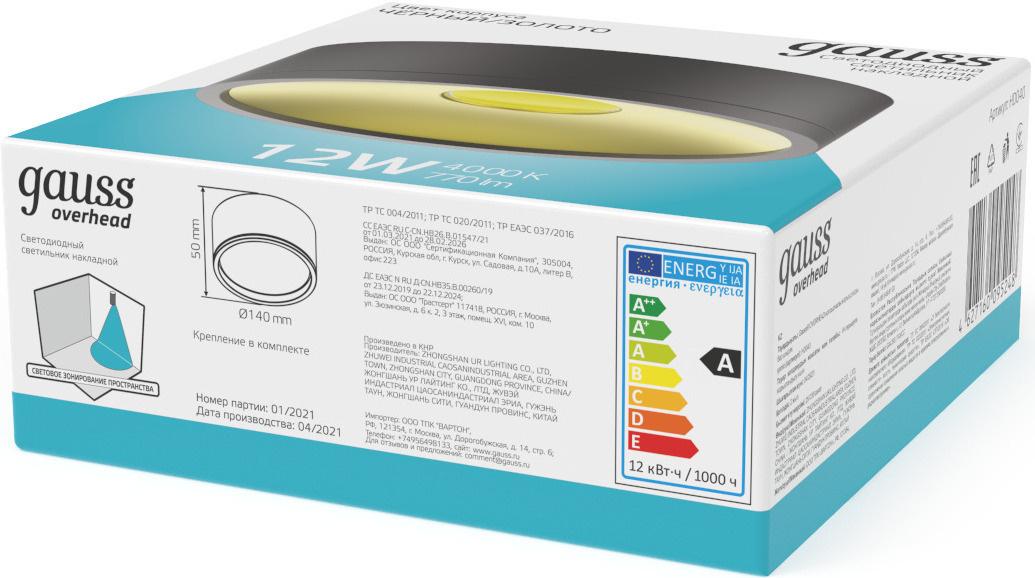 - Ссылка на сайт поставщика/вендора: https://b2b.gauss.ru/catalog/svetilniki-b2c/nakladnye-svetilniki/svetilniki-nakladnye-overhead-/svetilnik-gauss-overhead-nakl-tsil-12w-770lm-4000k-170-240v-ip20-140-50mm-chernyy-zoloto-led-1-30/