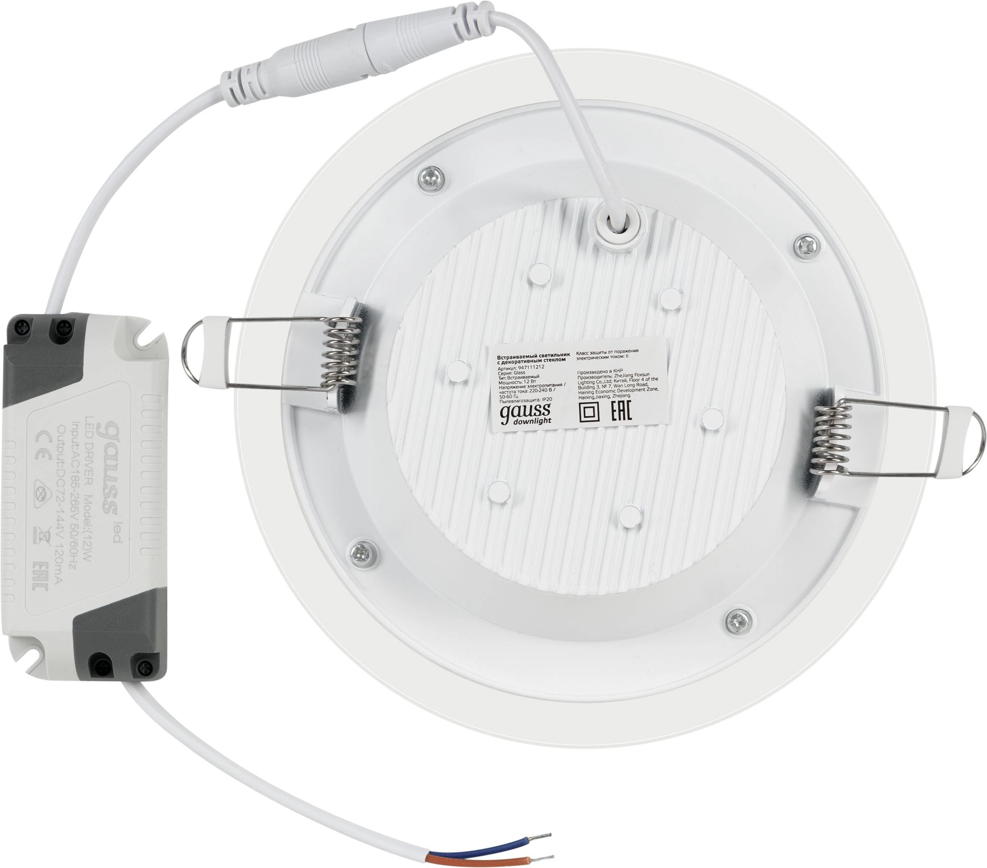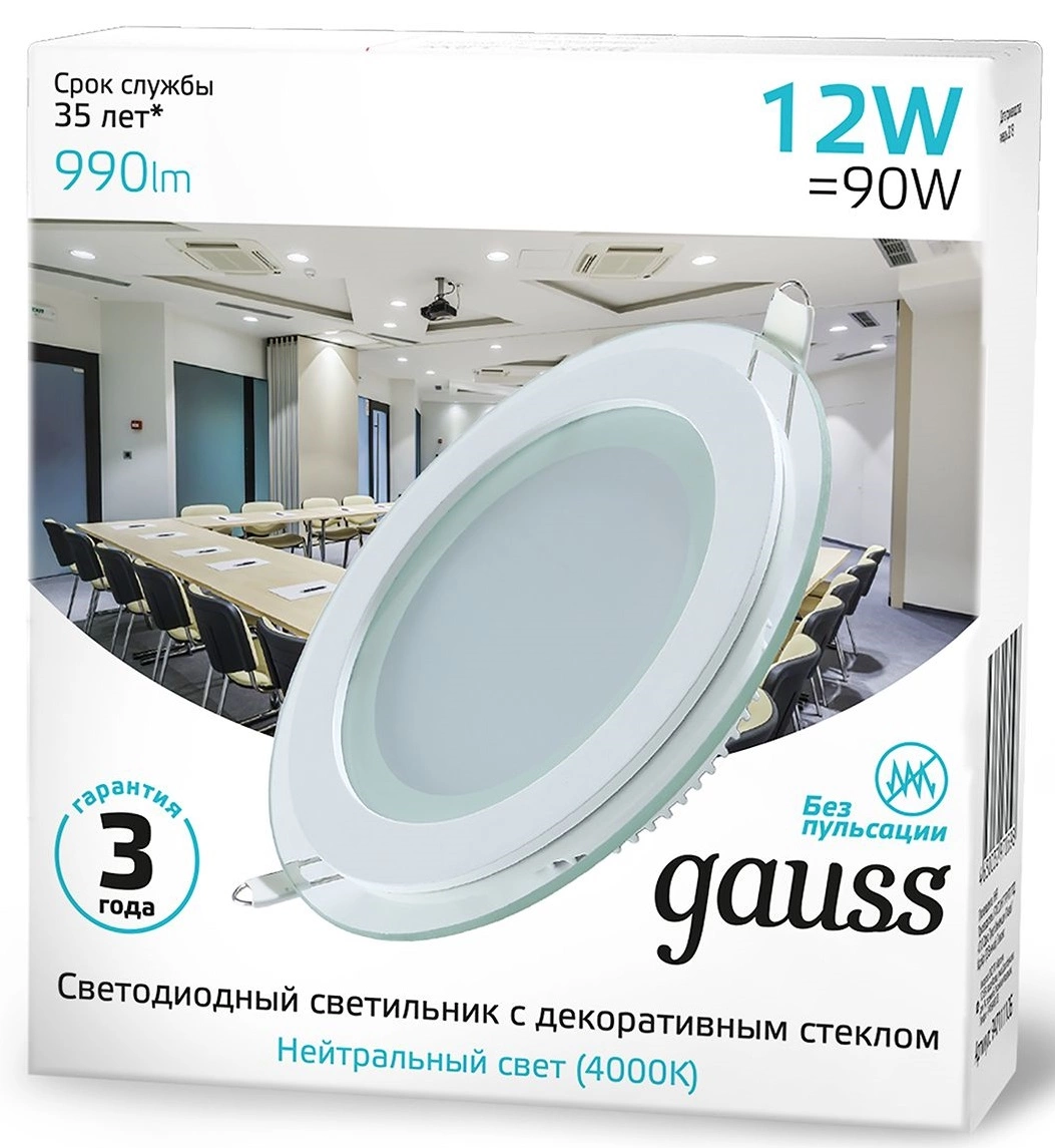 - Ссылка на сайт поставщика/вендора: https://b2b.gauss.ru/catalog/svetilniki-b2c/vstraivaemye-svetilniki/svetilniki-s-dekorativnym-steklom/svetilnik-gauss-glass-krug-12w-990lm-4000k-220-240v-ip20-mont-118-160-35-s-dek-steklom-led-1-40/