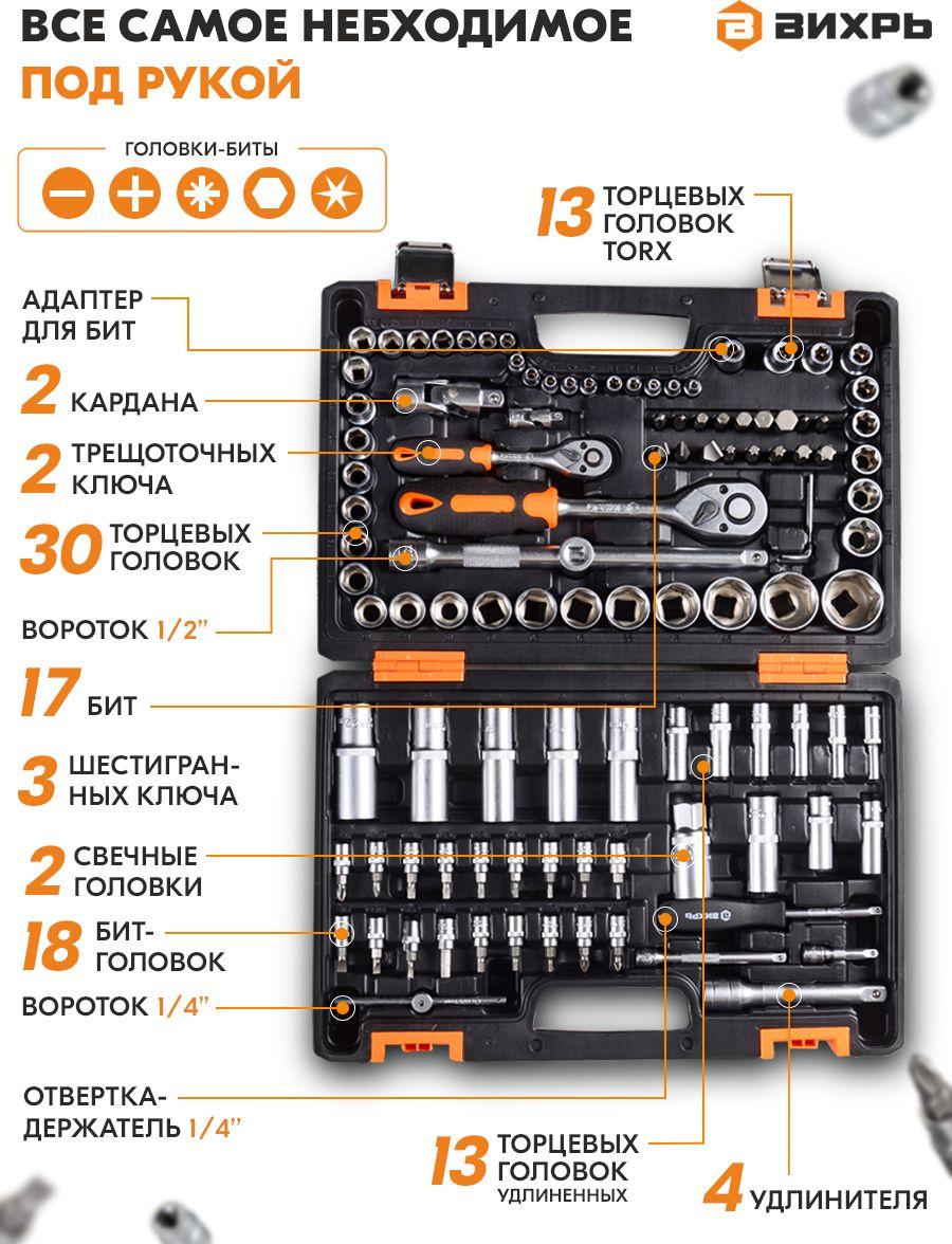 - Описание: Набор инструмента предназначен для ремонта автомобилей, мотоциклов, садовой и другой техники.