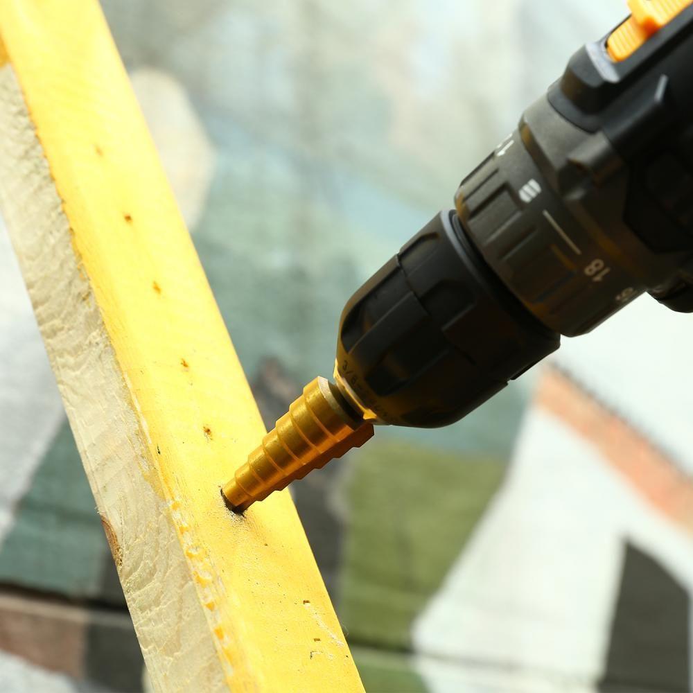 - Описание: Набор ступенчатых сверл с шестигранным хвостовиком DEKO SD03, 12, 20, 32 мм, 3 шт.