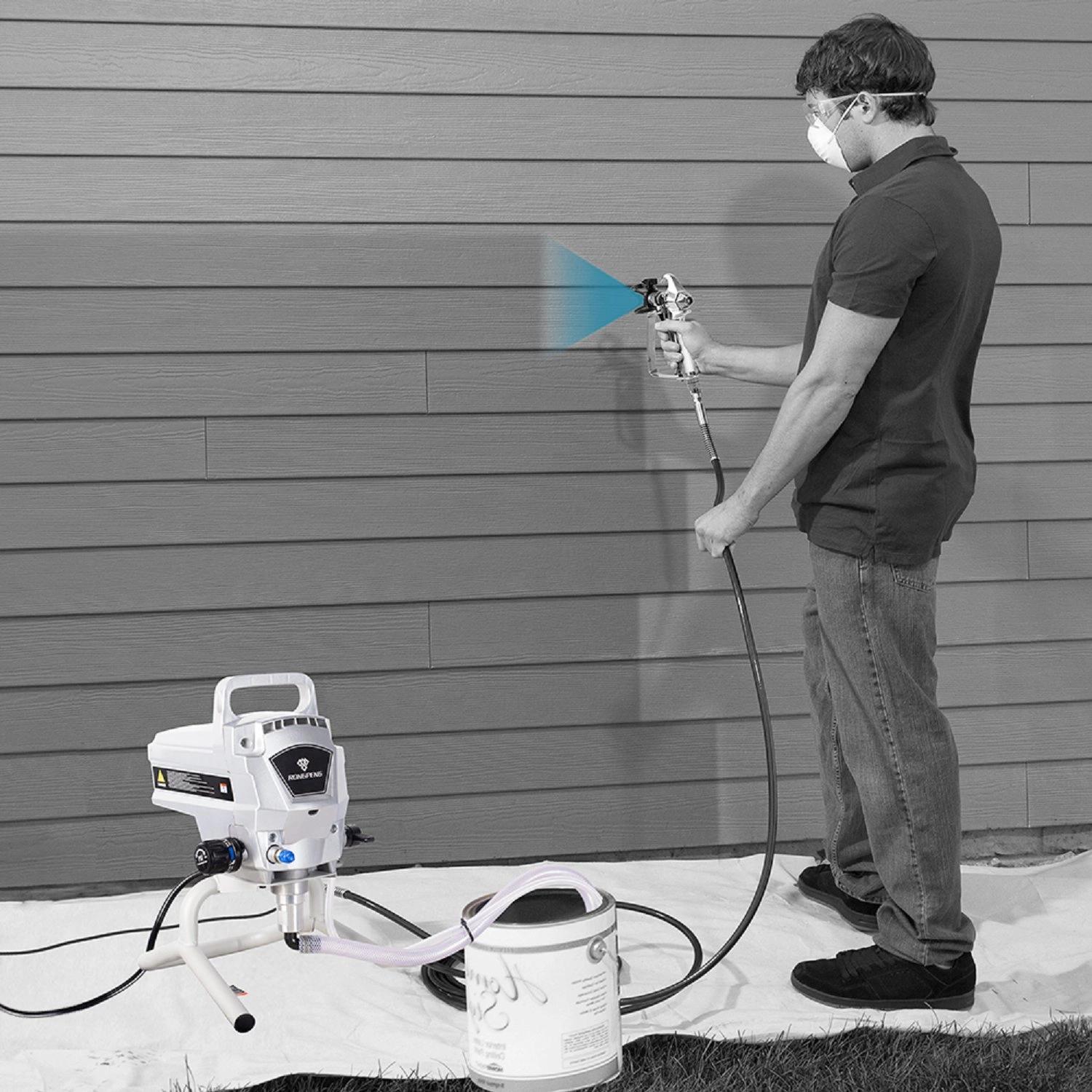 - Комплектация: Окрасочный аппарат, окрасочный пистолет, шланг для подачи краски под давлением, гаечный ключ – 2 шт., стакан для краски, удлинитель, щетка, дополнительное сопло 513 (0.013"), фильтр 150 mesh для сопла 513, дополнительное сопло 523 (0.023"), фильтр 60 mesh для сопла 523, руководство по эксплуатации.