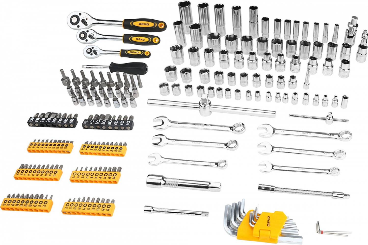 - Описание: Профессиональный набор инструментов для авто DEKO DKAT200 065-0913 предназначен для автосервиса, гаража и слесарных мастерских. Набор подходит для работы с крепёжными элементами с внешней и внутренней резьбой разного диаметра.
