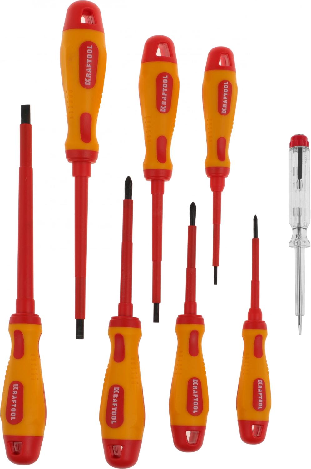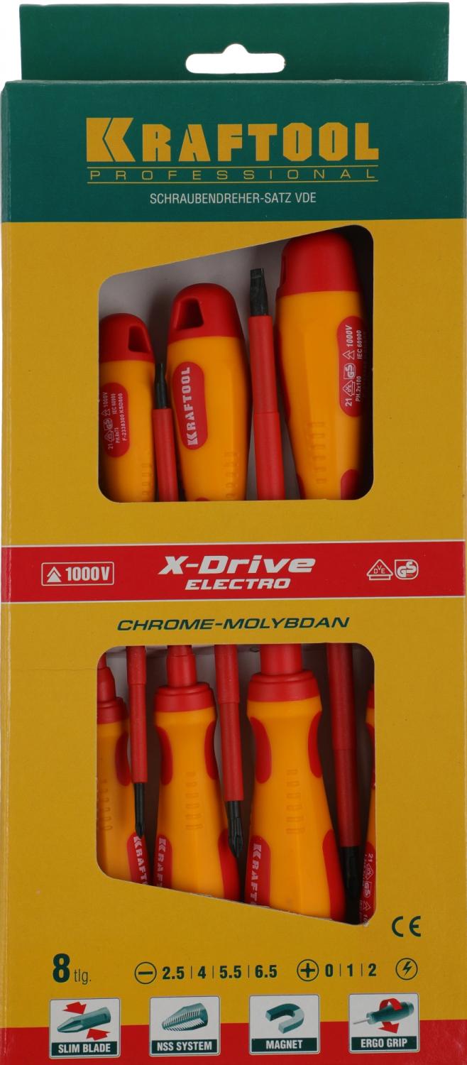 - Описание: Профессиональный набор ВЫСОКОВОЛЬТНЫХ ОТВЁРТОК KRAFTOOL. Кованый закаленный хромомолибденованадиевый стержень. Предназначен для работ с высочайшим уровнем безопасности под напряжением до 1000 В. Каждая единица продукции прошла тестирование на пробой 10000 В.