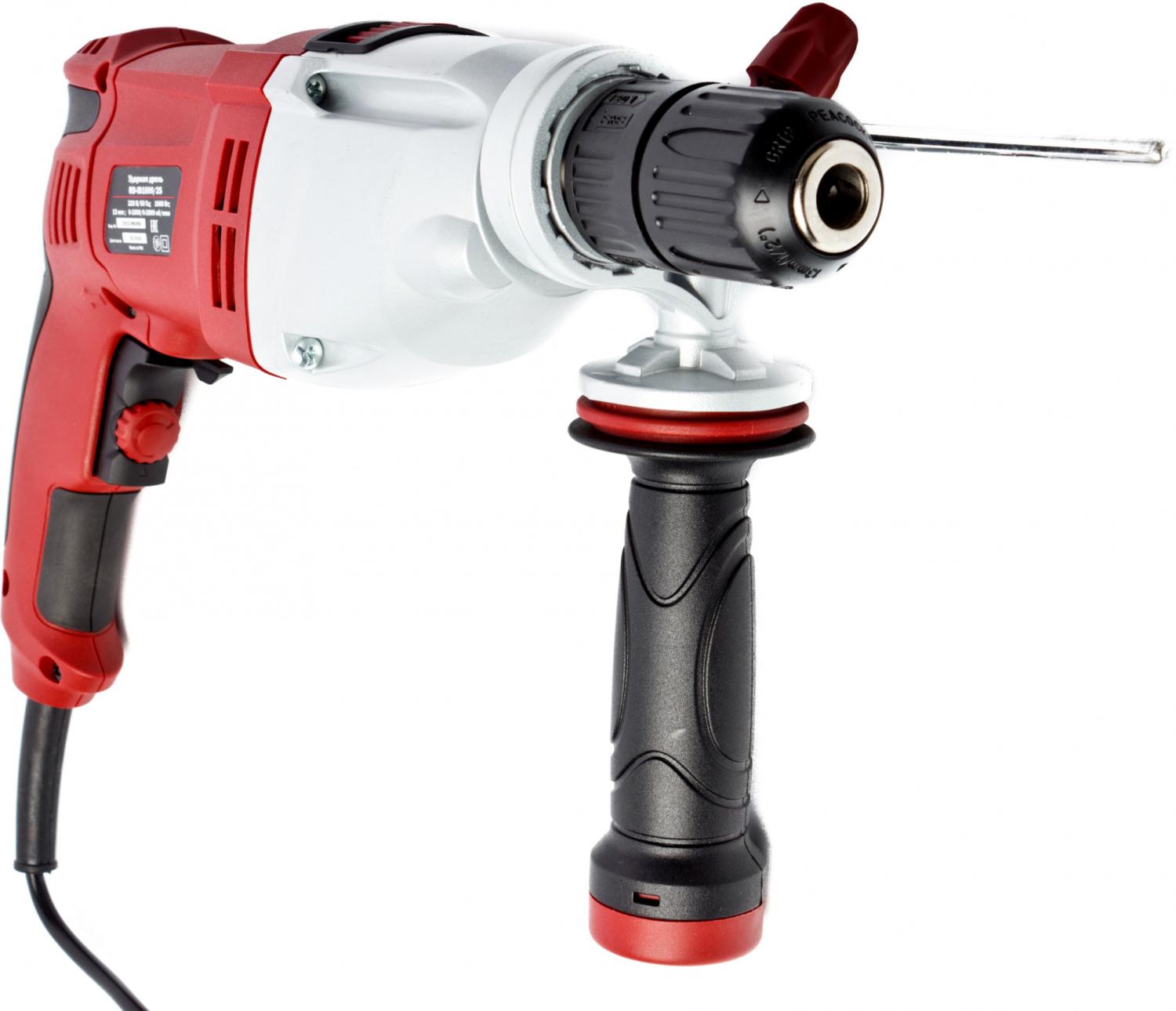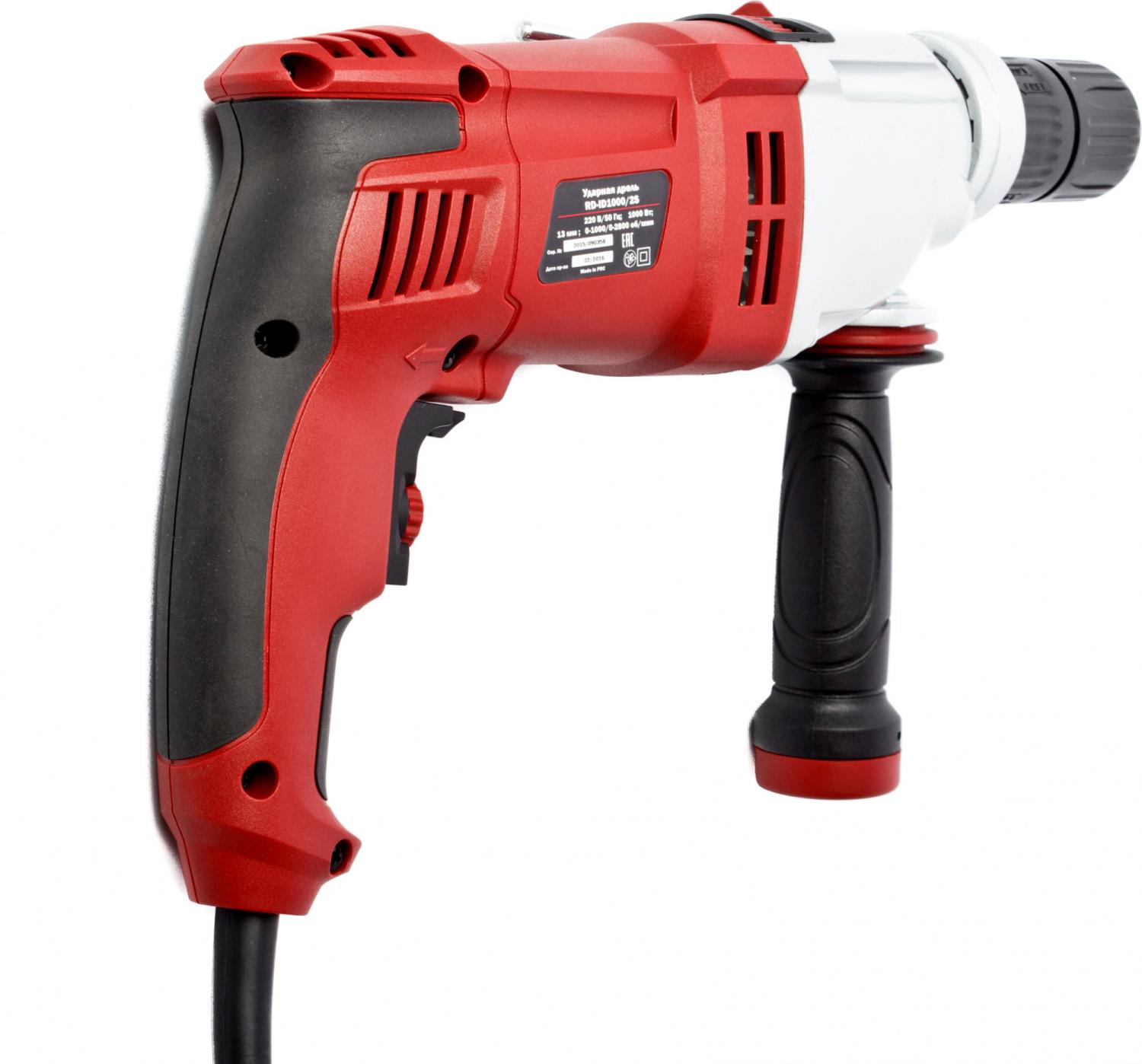 - Комплект поставки: Дрель, дополнительная рукоятка, ограничитель глубины сверления, угольная щетка - 2 шт., инструкция по эксплуатации.