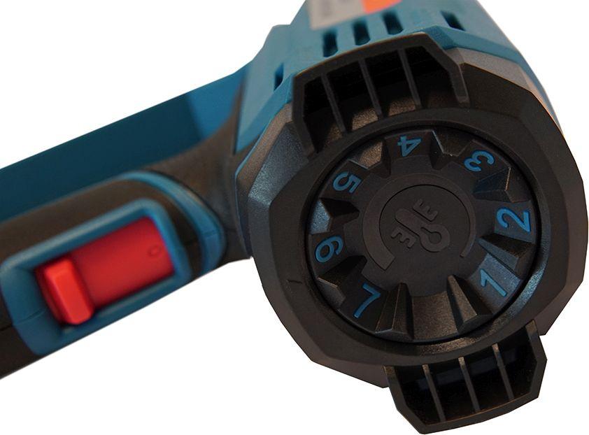 - Особенности: Эргономичный переключатель режимов работы на тыльной стороне рукоятки. 3 режима работы с разным потенциалом по температуре и потоку воздуха с плавной регулировкой температуры внутри режимов.