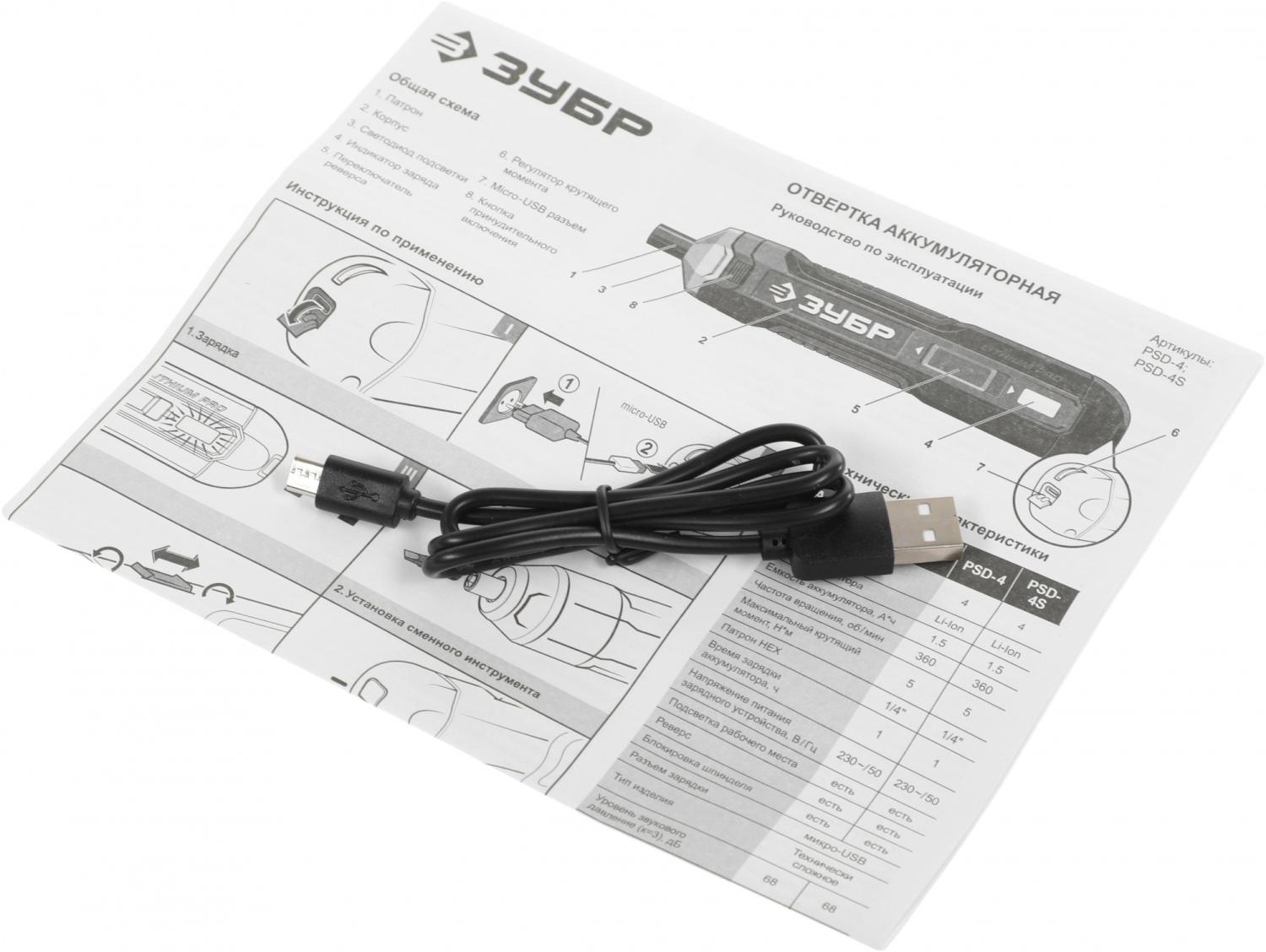 - Комплект поставки: Отвертка, зарядный провод micro-USB, руководство по эксплуатации.