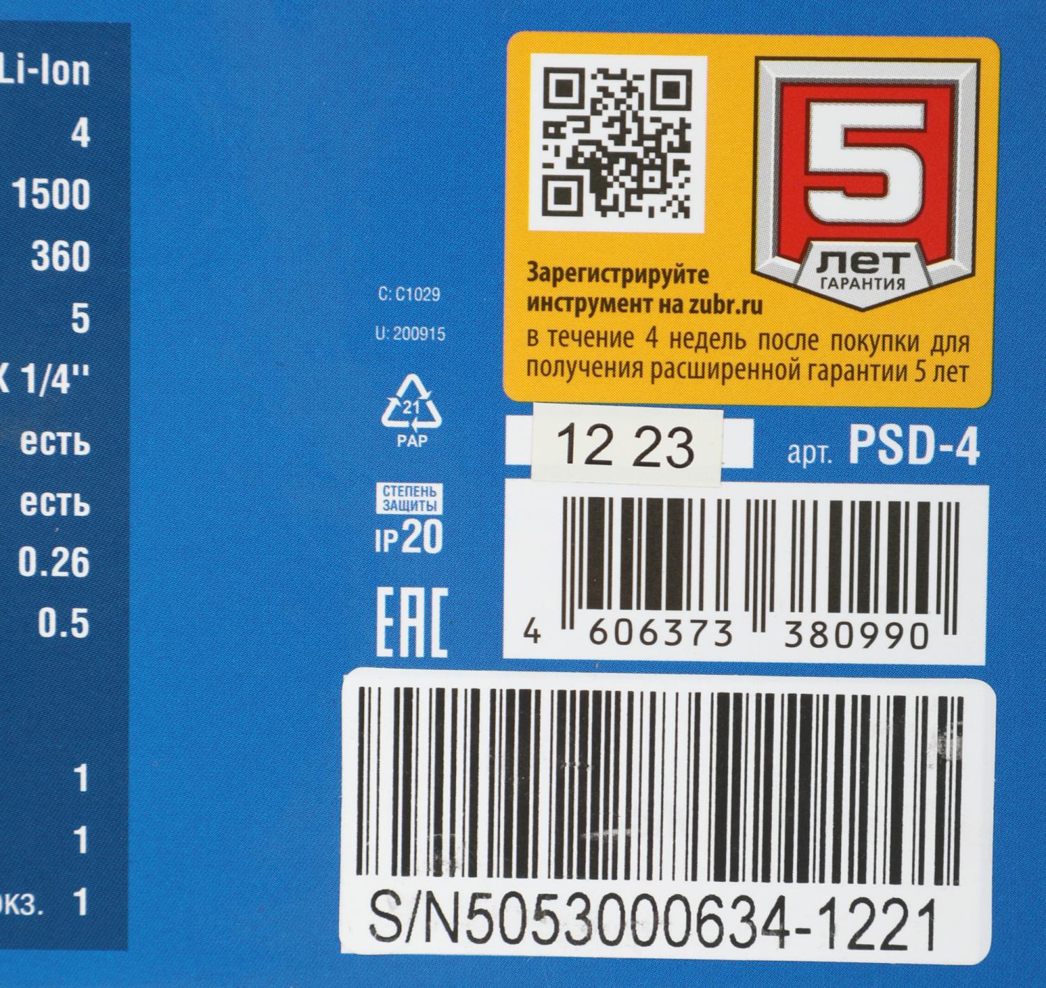 - Ссылка на сайт поставщика/вендора: https://zubr.ru/mekhanizirovannye-instrumenty/akkumulyatornyy-instrument/akkumulyatornye-otvertki/otvertki-li-ion/psd-4-4ee9/?ID=996413