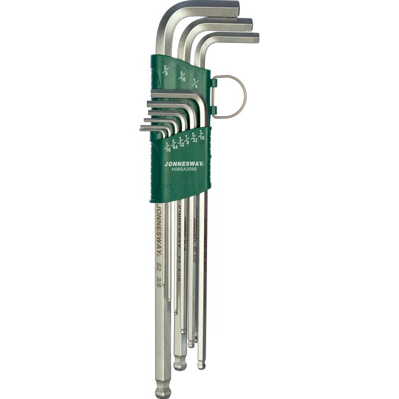 Набор торцевых шестигранных ключей с шаром 1/16"-3/8" 9 шт. Jonnesway X-TRA LONG H06SA209S от магазина РЭССИ