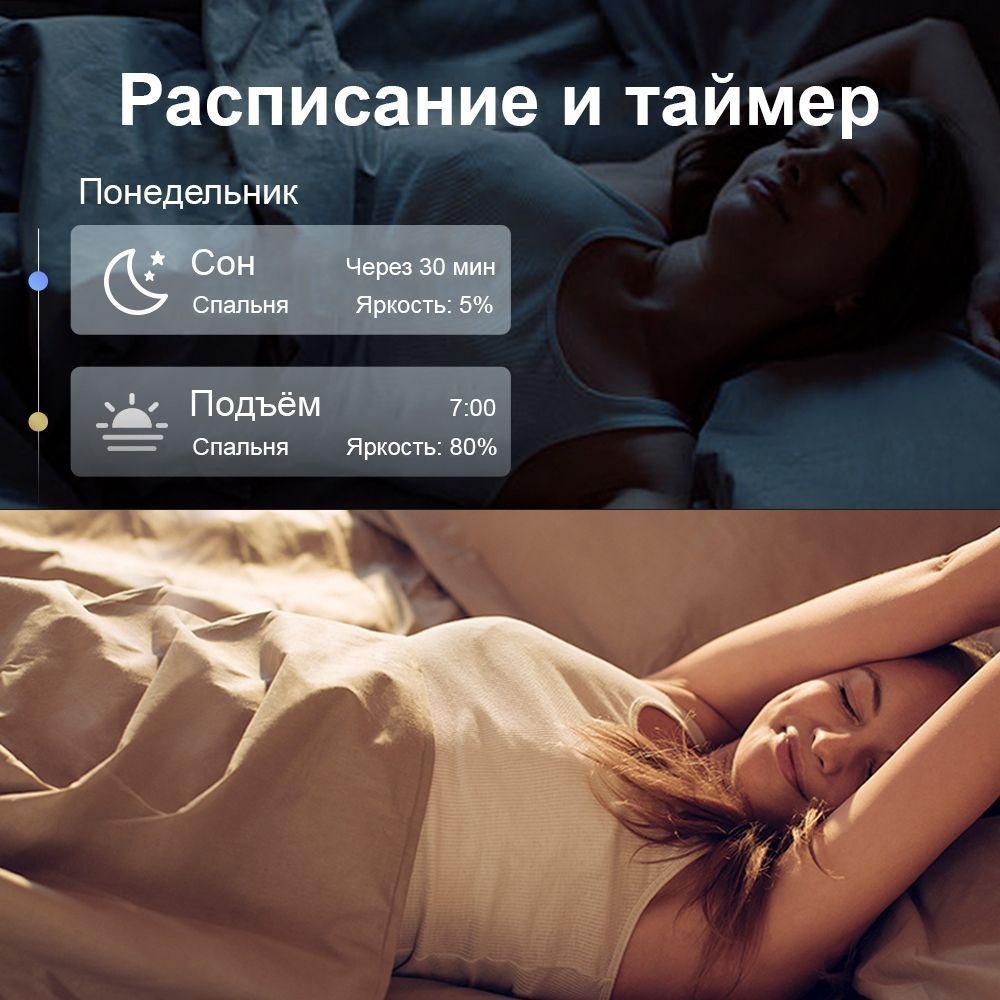 - Возможности: Регулировка яркости и цветовой температуры, Создание расписания для включения/выключения на заданной яркости в нужное время. Удаленное управление. Голосовое управление при помощи Маруси, Яндекс Алисы или Google Assistant