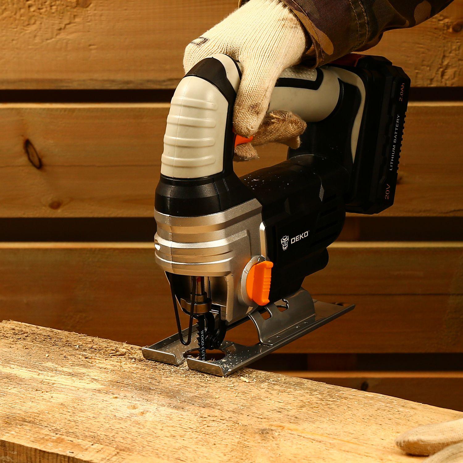 - Особенности: Лобзик аккумуляторный DEKO DKJS20 20В 2*2.0Ач используется для распиливания дерева, металла, пластика, резины при отделочных или ремонтных работах. Наличие бесключевого патрона значительно облегчает замену полотна. Два режима маятникового хода позволяют ускорить работу.