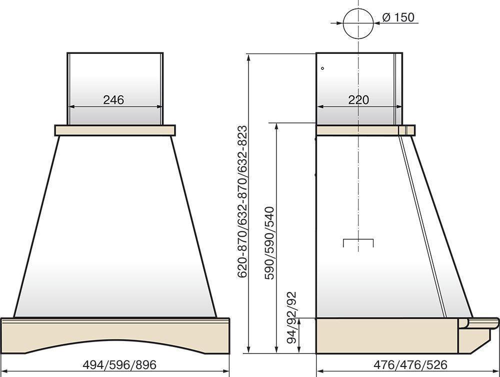 - Особенности: Вытяжка может работать в режиме рециркуляции, для этого необходимо использовать комплект угольных фильтров Ф-02, который приобретается дополнительно.