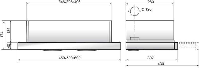 - Ширина вытяжки: 600