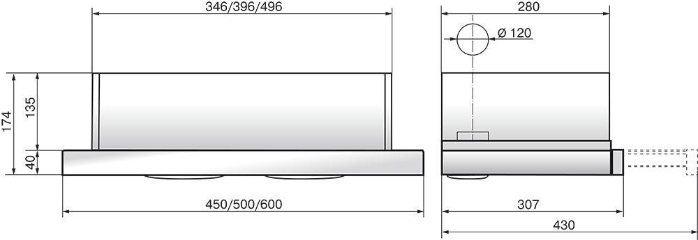- Ширина вытяжки: 500