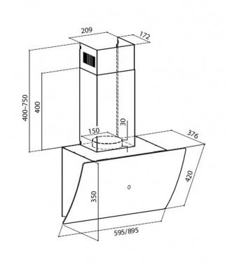 - Высота вытяжки (мин/макс): 75x110см