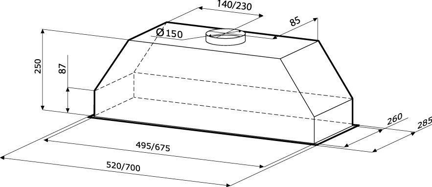 - Ширина вытяжки: 700