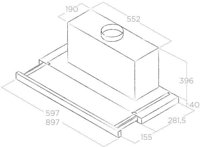 - Ширина вытяжки: 897