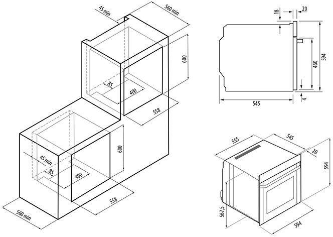 - Размеры для встраивания: 55.8x56x60см