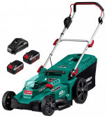 - Комплект поставки: Газонокосилка, аккумуляторная батарея - 2 шт., быстрозарядное устройство, травосборник, рукоятка верхняя, рукоятка нижняя, ключ, комплект крепежа, руководство по эксплуатации.