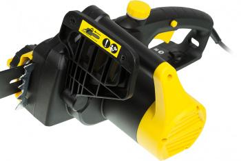 - Особенности: Надежное удержание. Удобная задняя рукоятка небольшого размера с пусковым курком жестко сидит в руке, что способствует надежному удержанию электропилы. Безопасность. Автоматический тормоз цепи в виде щитка обеспечивает безопасность работы с электропилой, в первую очередь, защиту ваших рук.