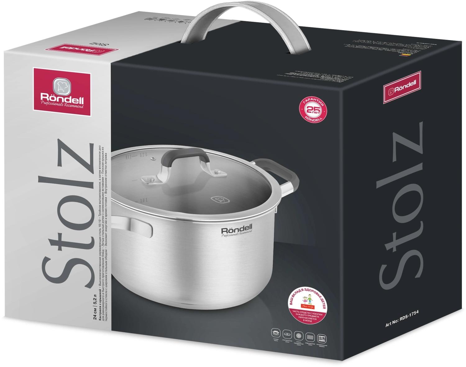 - Описание: Название Stolz (с нем. «гордость») обусловлено выдающимися техническими характеристиками и эффектным дизайном. Кастрюли из пищевой нержавеющей стали имеют тройное вштампованное, а затем вплавленное дно. Оно обеспечивает быстрый равномерный прогрев всей поверхности и идеальное приготовление блюд.