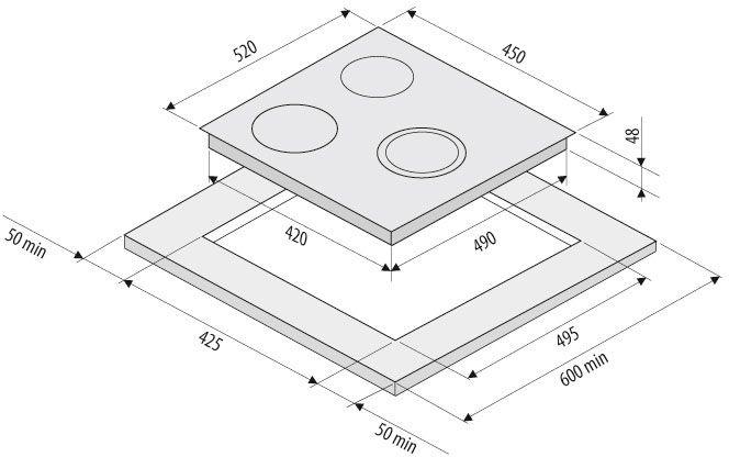 - Размеры для встраивания: 425x495мм