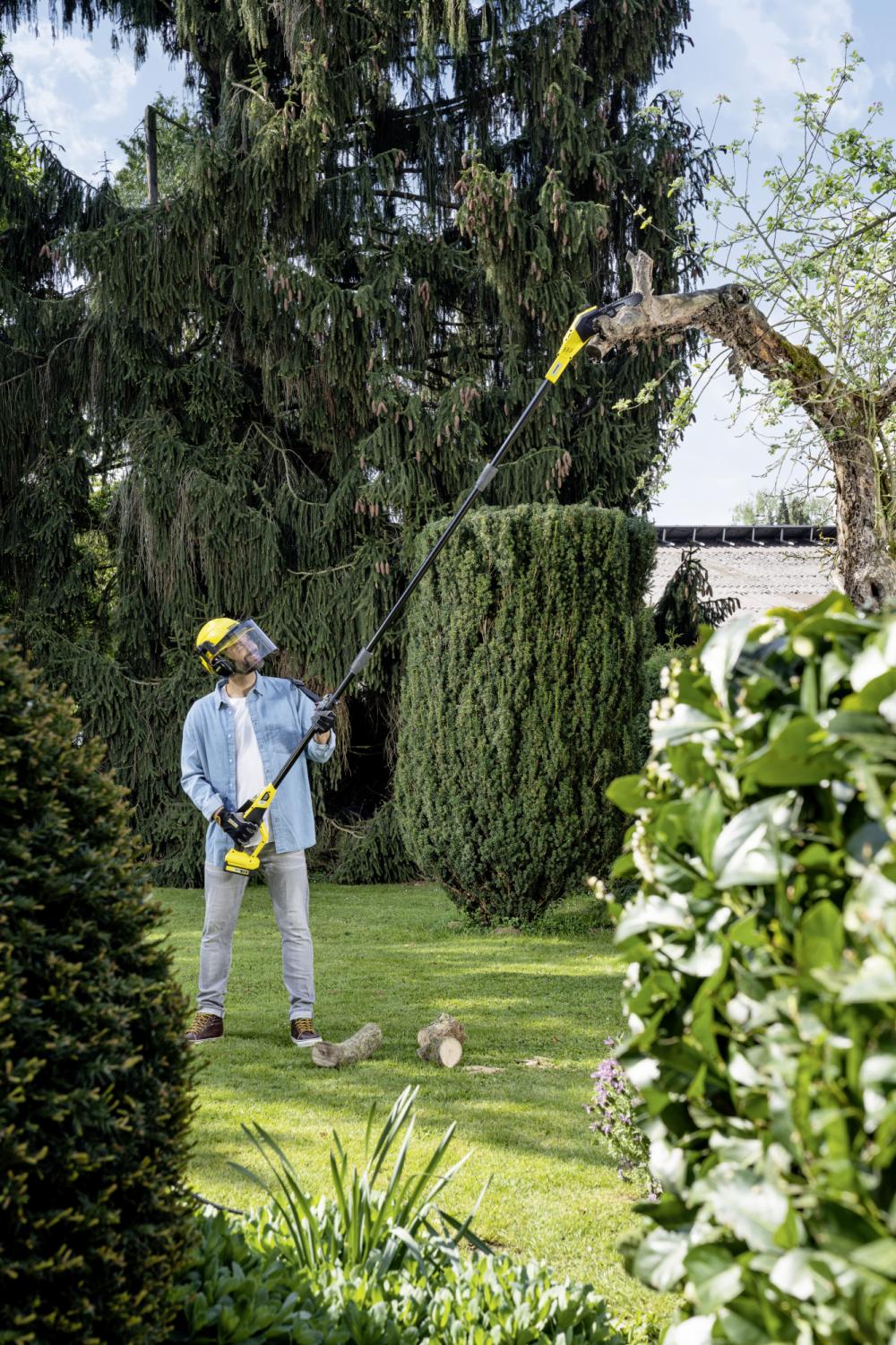 - Особенности: Благодаря практичному удлинителю аккумуляторный высоторез PSW 18-20 Battery прекрасно подходит для ухода за высокими деревьями. Его шина, установленная под оптимальным углом наклона 30 град., позволяет, стоя на земле, удобно обрезать сучья, находящиеся на высоте до 4 м.