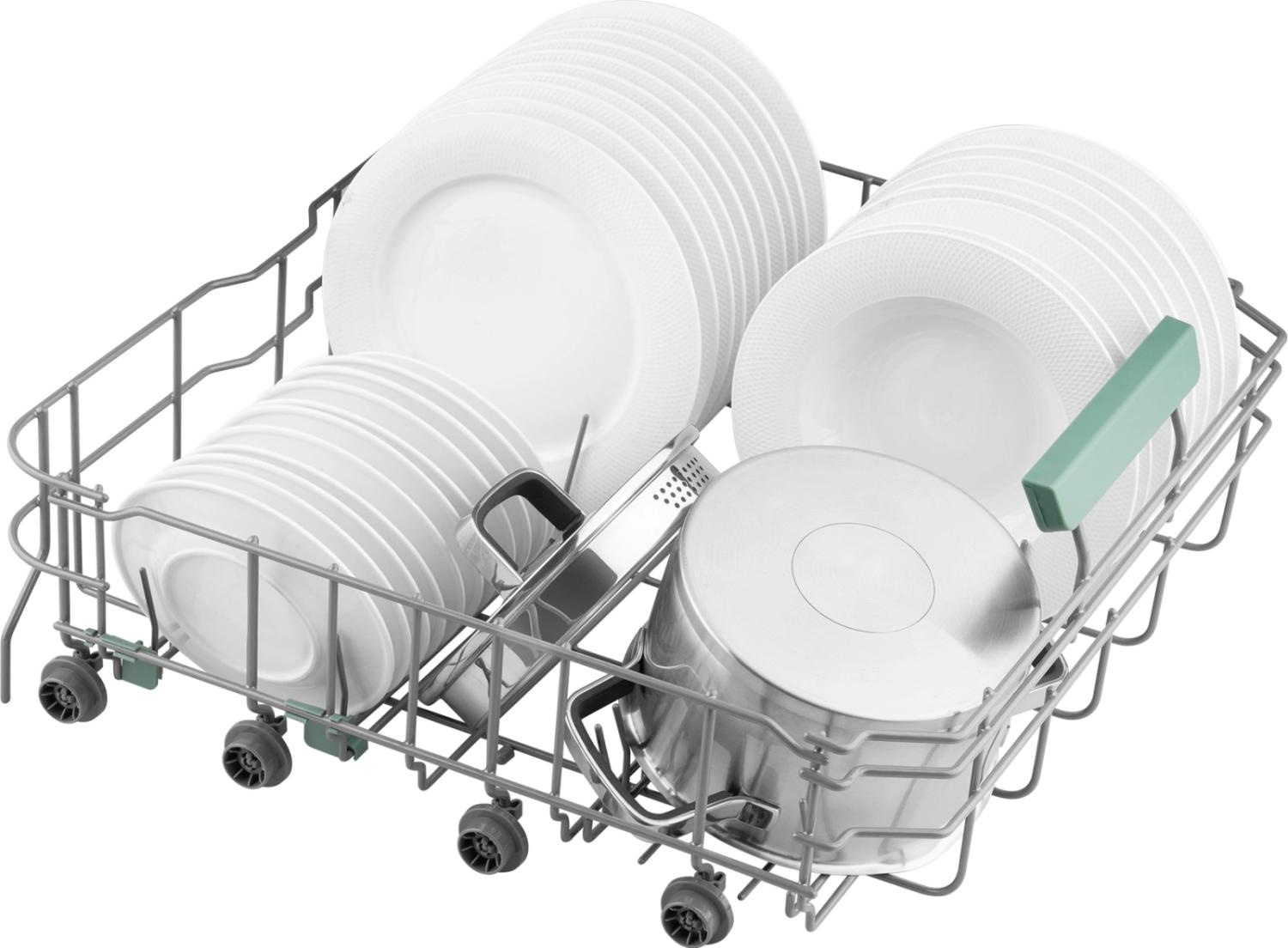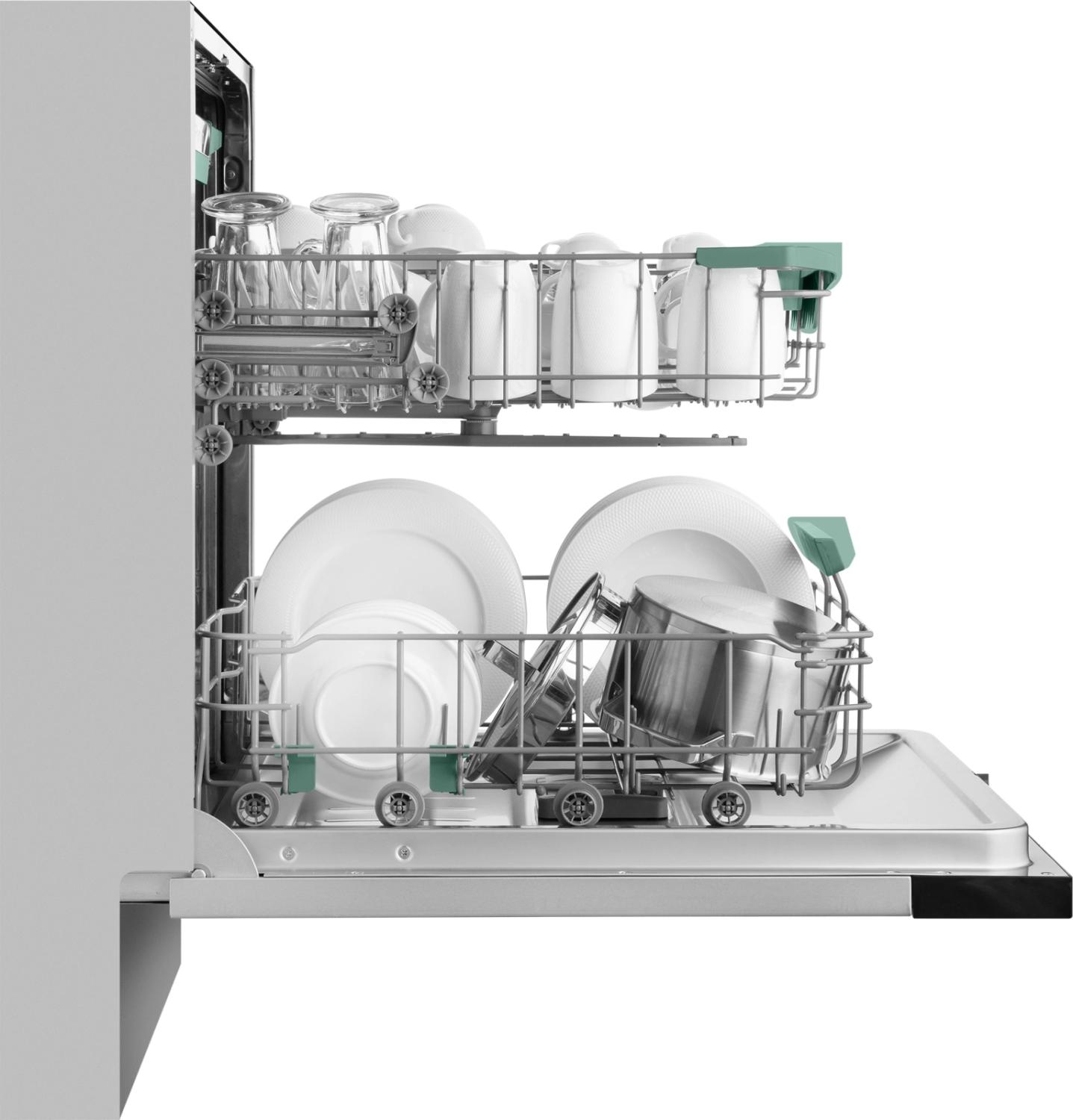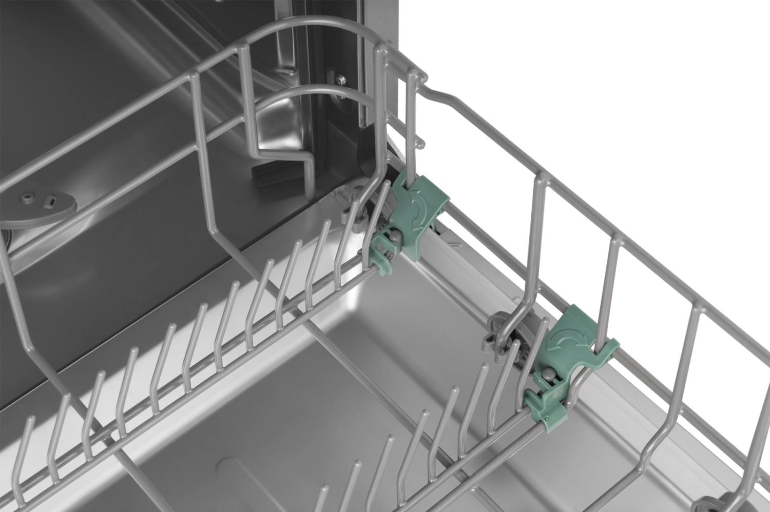 - Внутренняя конструкция: корзина для столовых приборов, регулируемая по высоте корзина для посуды