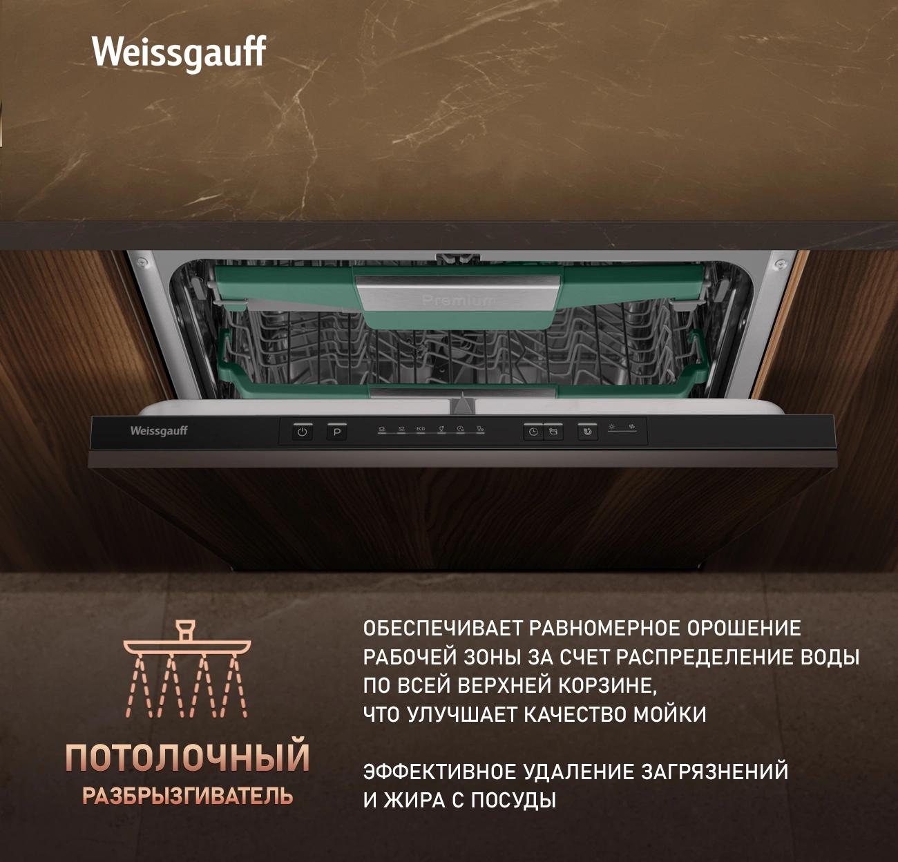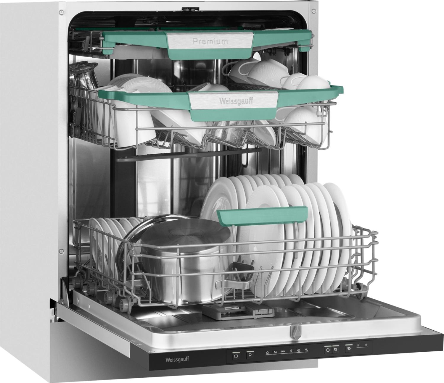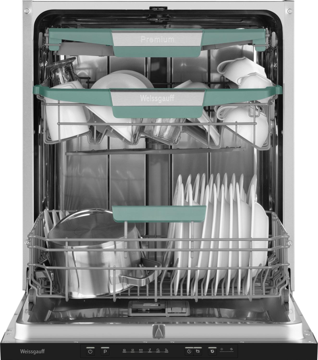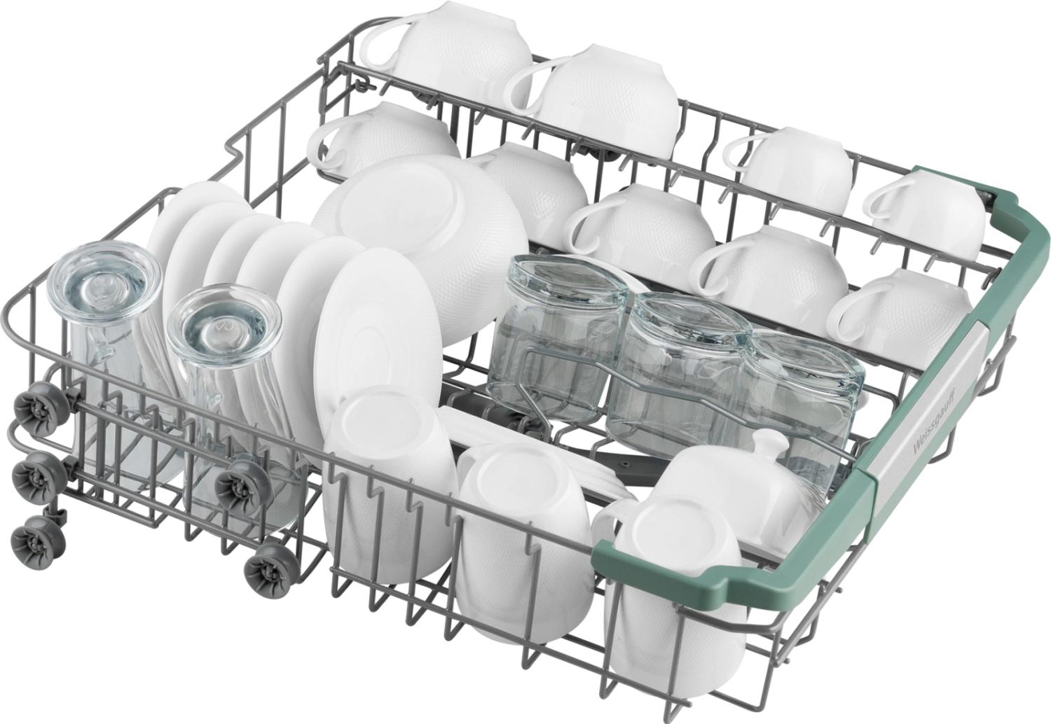 - Внутренняя конструкция: корзина для столовых приборов, регулируемая по высоте корзина для посуды