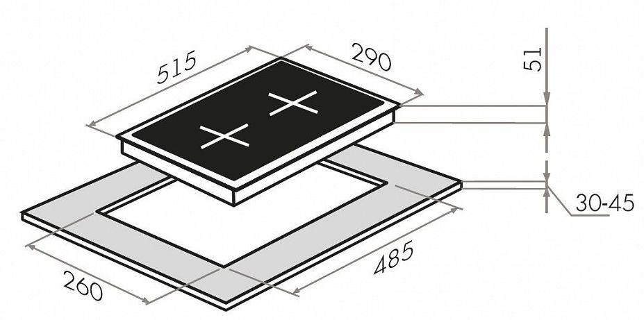 - Размеры для встраивания: 260x485