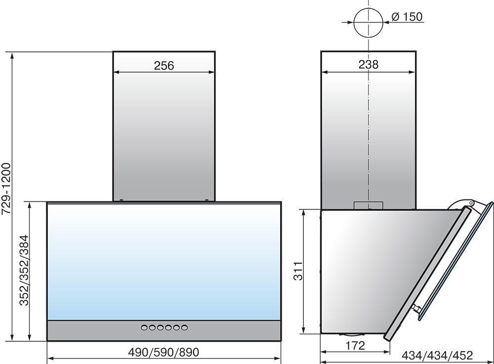 - Тип вытяжки: наклонная