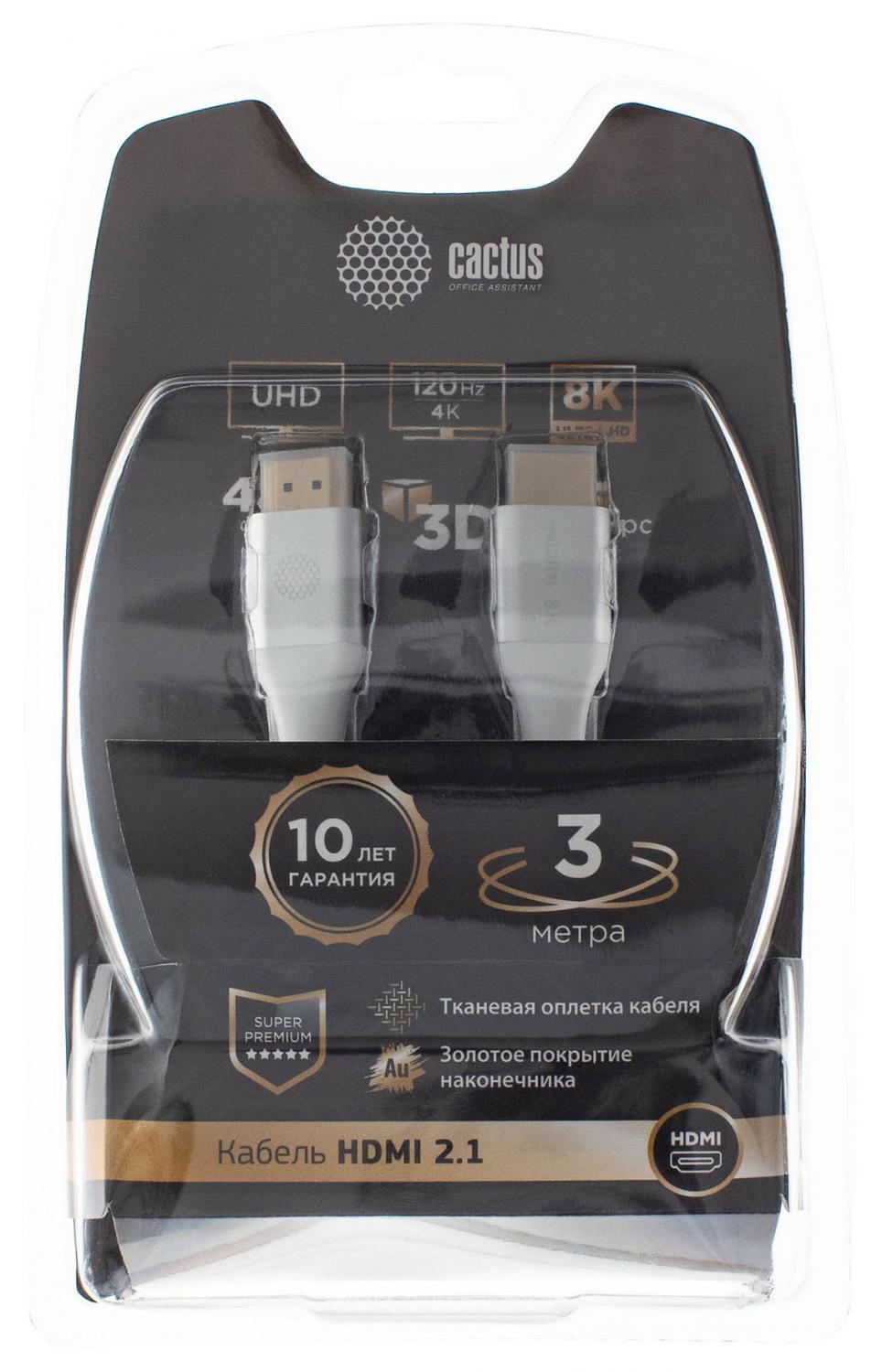 Кабель аудио-видео Cactus CS-HDMI.2.1-3 HDMI (m)/HDMI (m) 3м. Позолоченные контакты серебристый от магазина РЭССИ