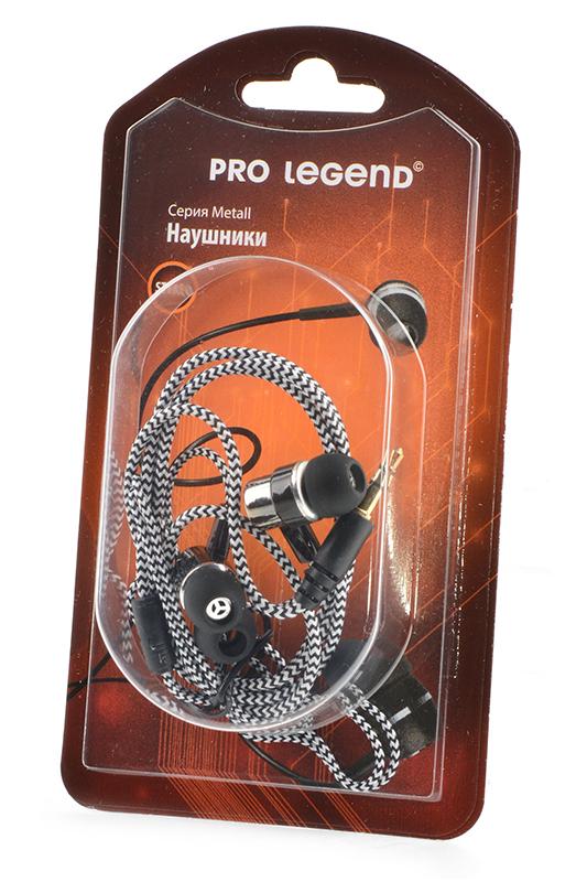 Наушники Pro Legend Metall PL5004 затычки, ткань, черно-белые, 20-20kHz, 102#3dB, 32 Ом, шнур 1м, gold BL1