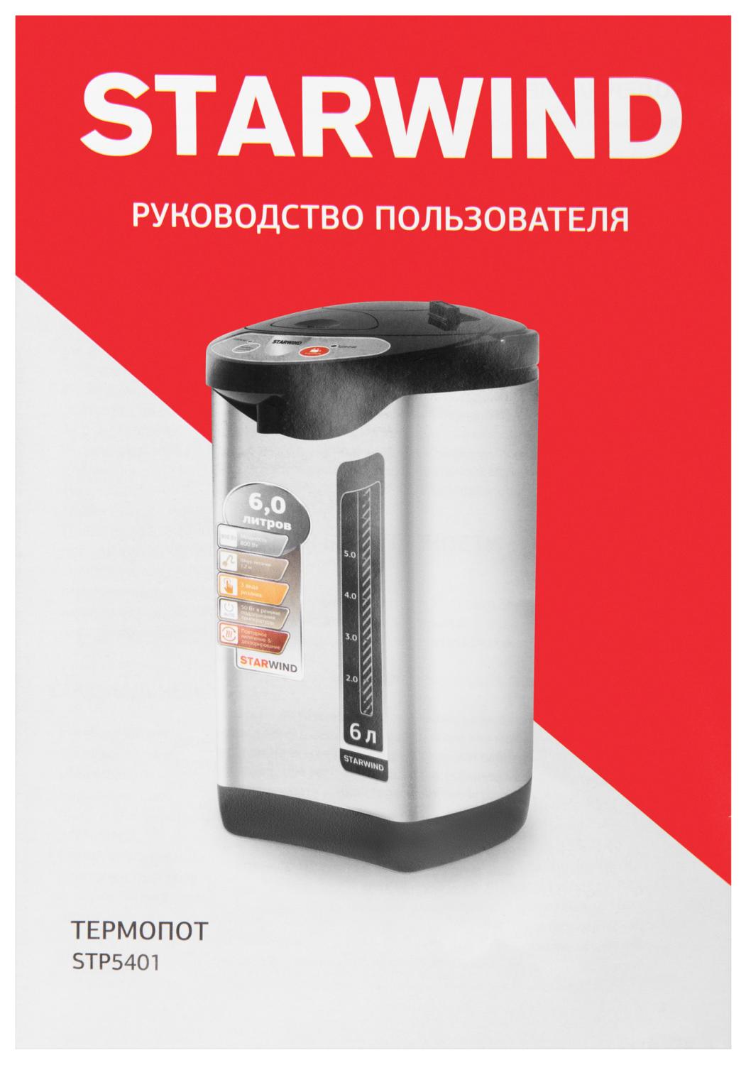 Термопот Starwind STP5401 6л. 800Вт черный/серебристый от магазина РЭССИ