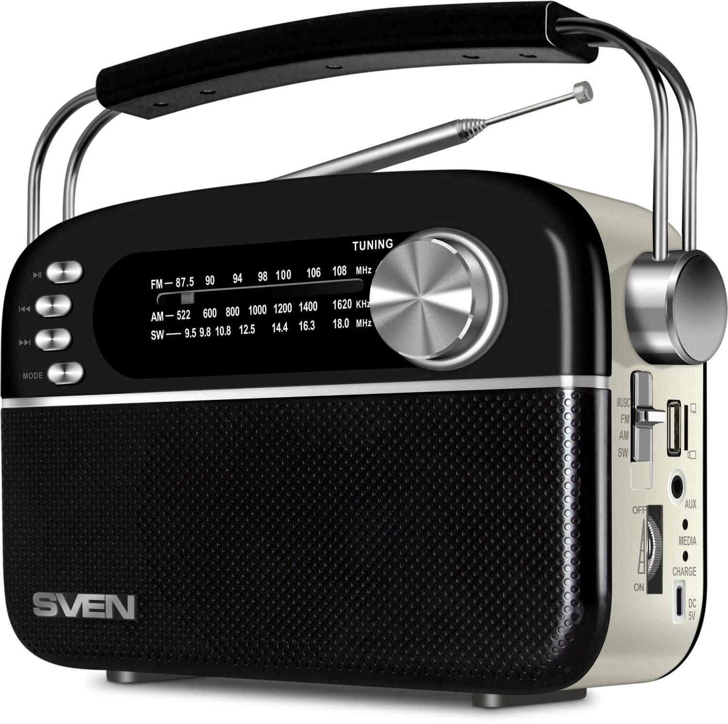 Радиоприемник портативный Sven АС SRP-505 черный/белый USB microSD