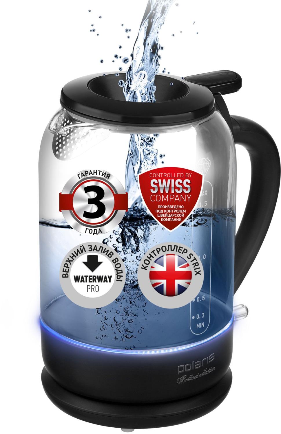 Чайник электрический Polaris PWK 1753CGL 1.5л. 1950Вт черный (корпус: стекло) от магазина РЭССИ