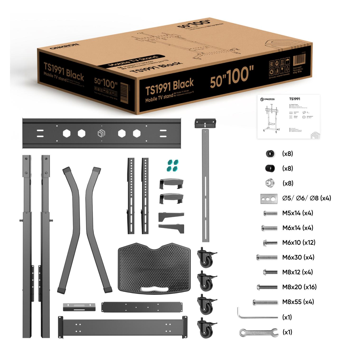 Стойка для телевизора Onkron TS1991 черный 50"-100" макс.130кг напольный наклон от магазина РЭССИ