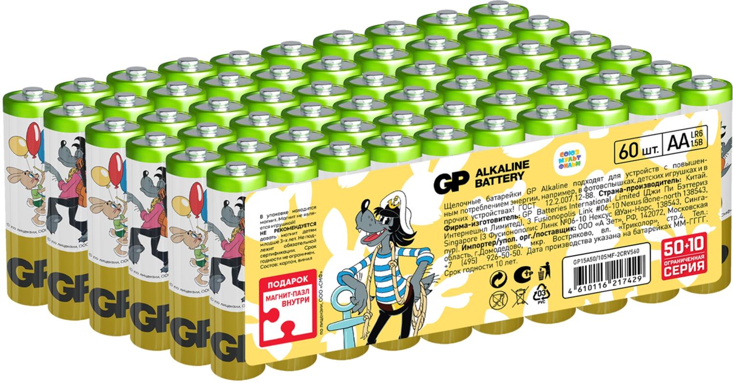 Батарея GP Super Alkaline 15A50/10SMF-2CRVS60 AA (промо:50+10) (60шт) спайка от магазина РЭССИ