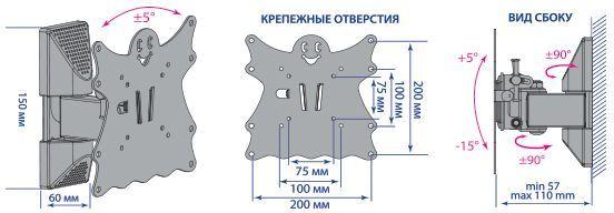 Кронштейн для телевизора Kromax Casper-202 черный 20"-43" макс.30кг настенный поворот и наклон от магазина РЭССИ