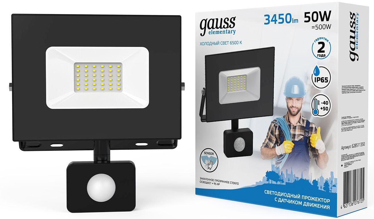Прожектор уличный Gauss Elementary 628511350 светодиодный 50Вт корп.алюм.черный от магазина РЭССИ