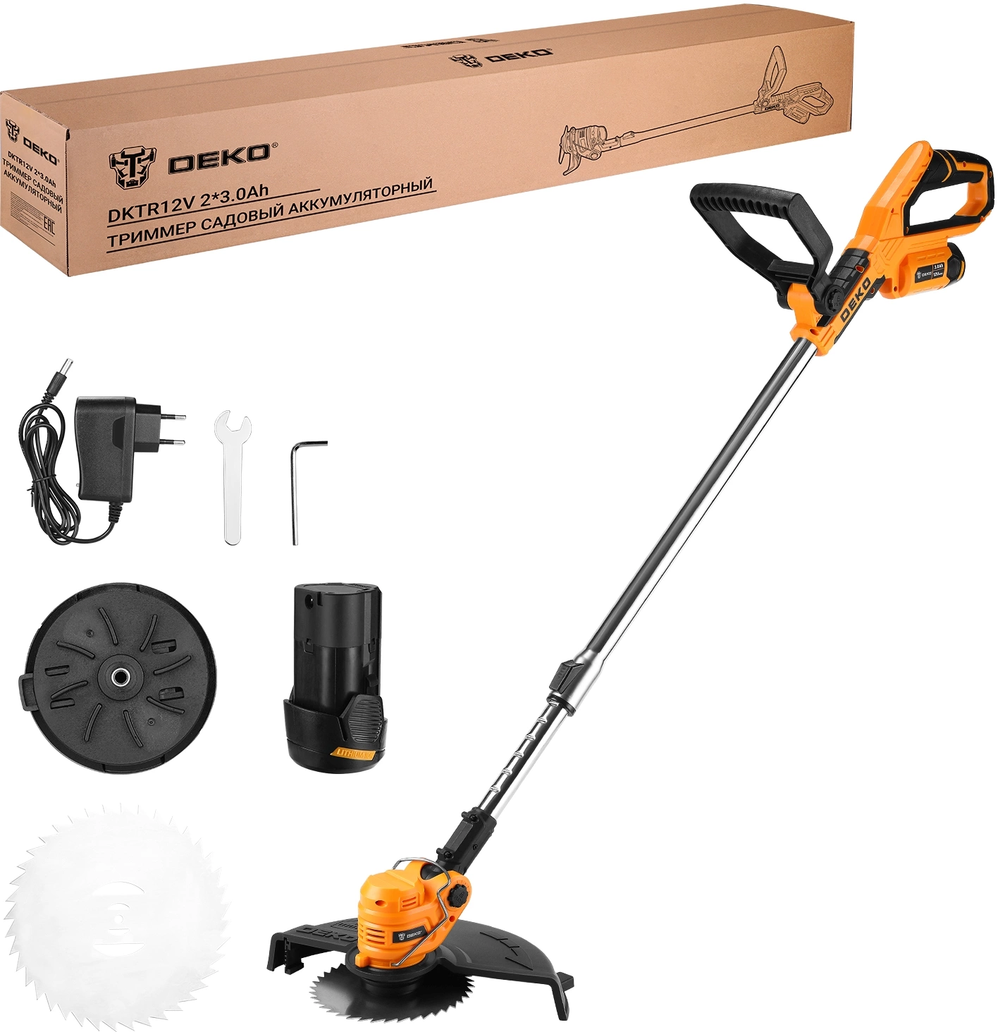 Триммер электрический Deko DKTR12V Max аккум. неразбор.штан. реж.эл.:леска/нож от магазина РЭССИ