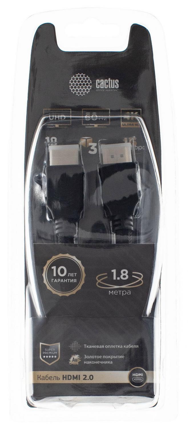 Кабель аудио-видео Cactus CS-HDMI.2-1.8 HDMI (m)/HDMI (m) 1.8м. Позолоченные контакты черный от магазина РЭССИ