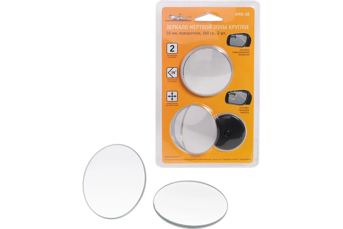 Круглое зеркало мертвой зоны 50 мм поворотное 360 градусов 2 шт Airline AMR-08 от магазина РЭССИ