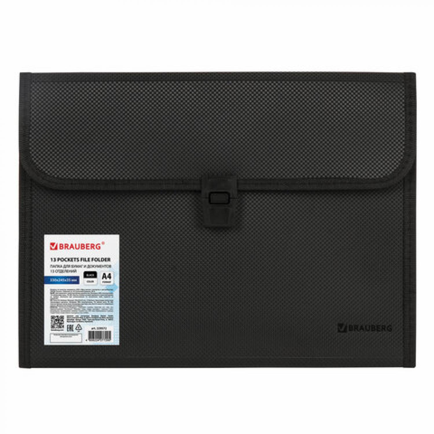 Папка для бумаг и документов BRAUBERG HIT с замком и 13 отделениями А4 пластик черная 229572 от магазина РЭССИ