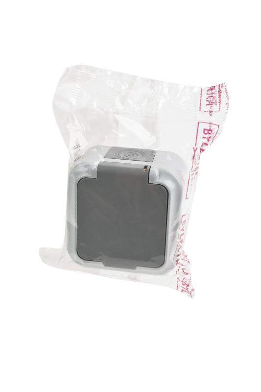 Розетка BYLECTRICA РА16-296 (03) "Пралеска Аква" 1гн б/з накладная с крышкой,пылебрызгозащ., серая BL1 от магазина РЭССИ