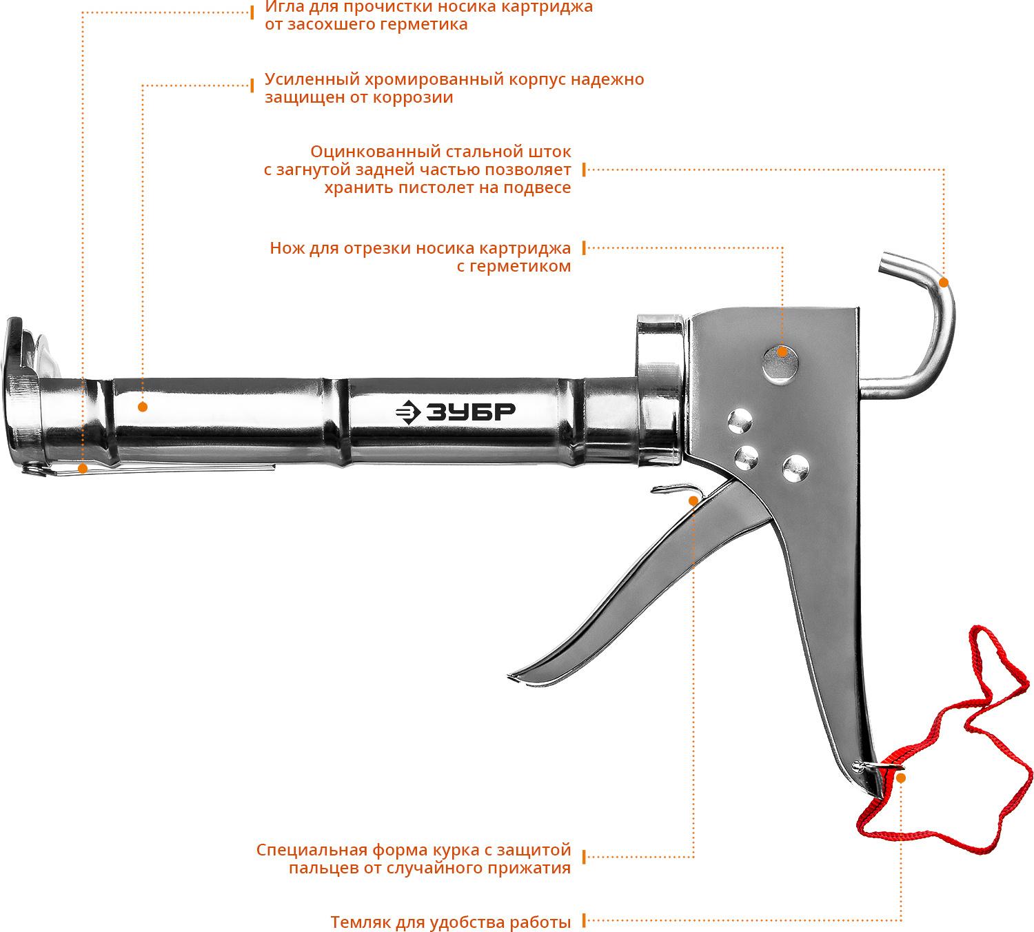 Пистолет для герметика Зубр 06625 механический полузакрытый для герметиков серебристый от магазина РЭССИ
