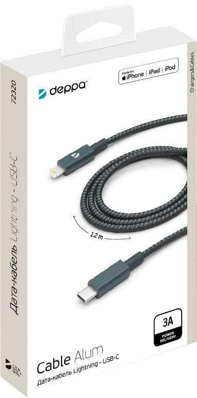- Описание: Стильные и надежные дата-кабели Deppa MFI в уникальном цвете Midnight Green поддерживают быструю зарядку и ярко выглядят. MFI-сертифицированный продукт. Передача мощности 60Вт (ток до 3А, напряжение до 20В). Максимум мощности для любого iPhone/iPad. Нейлоновая оплетка и алюминиевые разъемы.