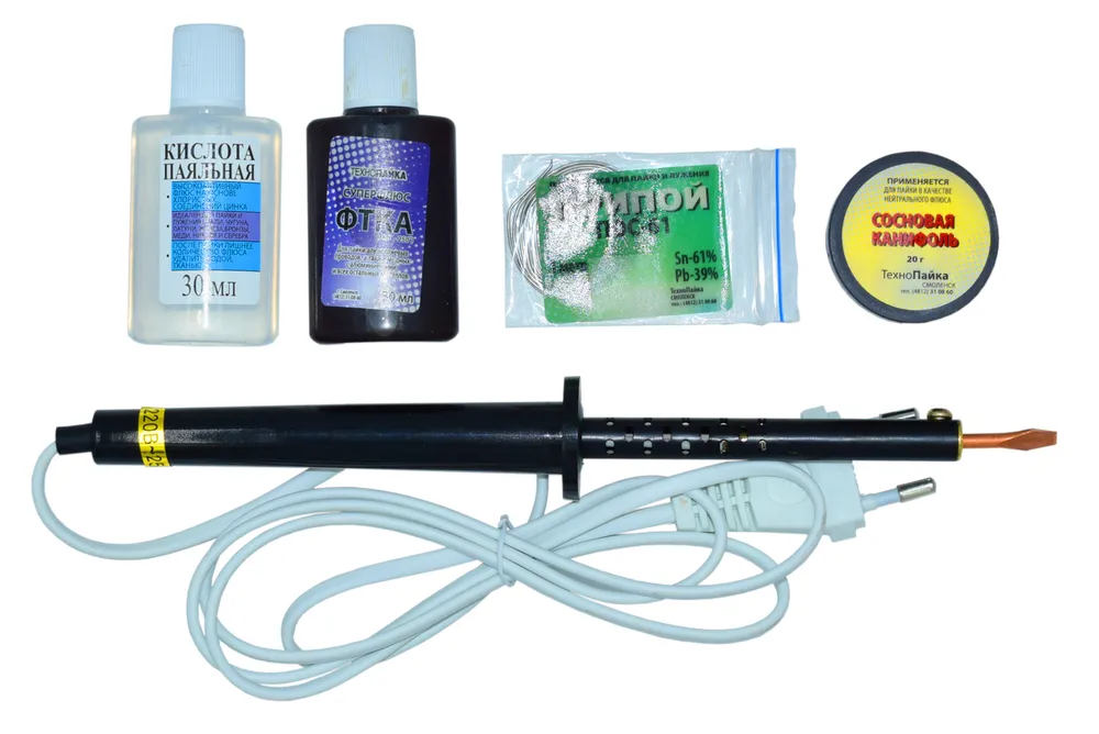 Набор для пайки №2( флюсы, припой+паяльник) от магазина РЭССИ
