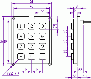 Кол-во кнопок: 3х4 (буквенно-цифровая)
