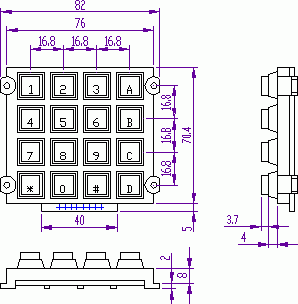 Кол-во кнопок 4х4 (буквенно-цифровая)